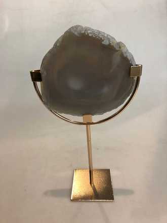 Polished agate slice on gold stand